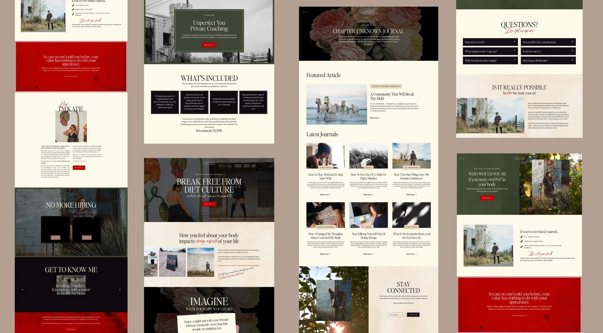 Katie is a body image coach who was ready to move beyond the typical pink-and-white wellness aesthetic with a brand that captures her bold and unapologetic approach to body positivity. The end result was editorial meets funky in this elevated design capturing the fearless energy and bold passion in her work.